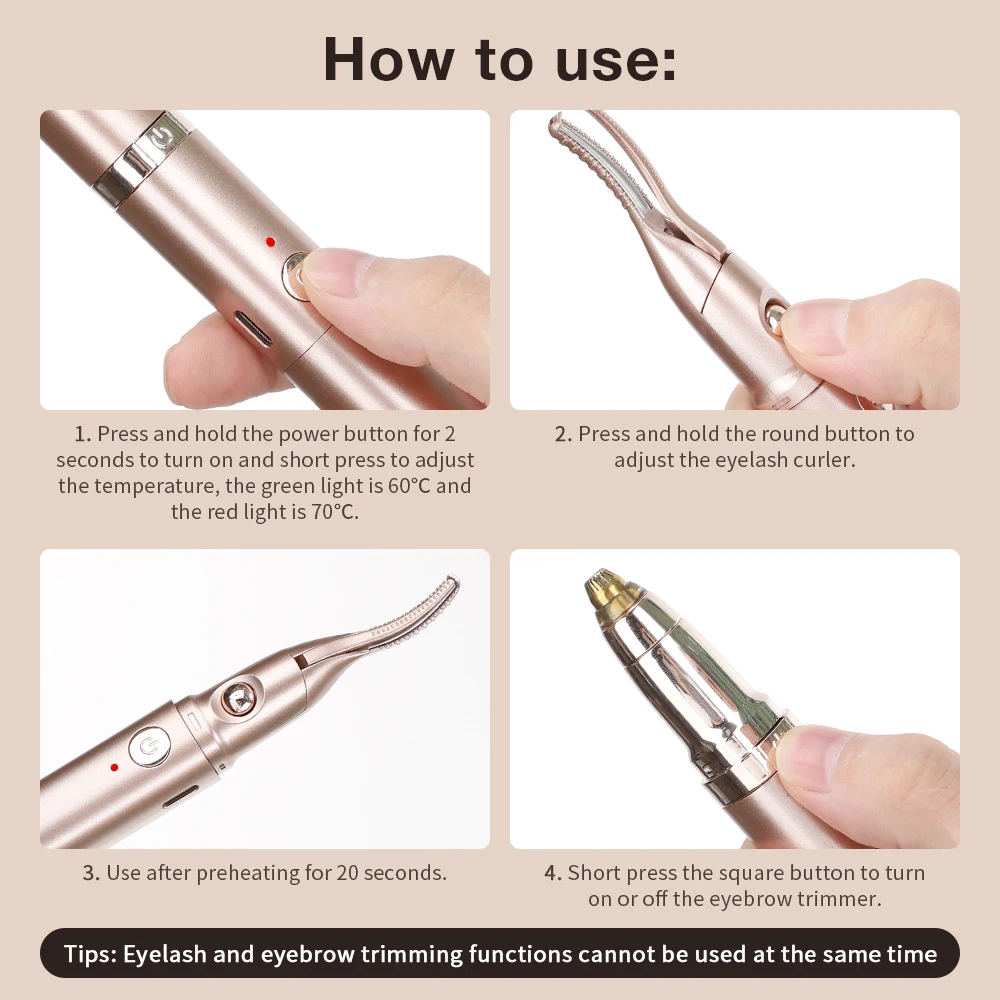 Function: Eyebrow Trimmer + Heated Eyelash Curler